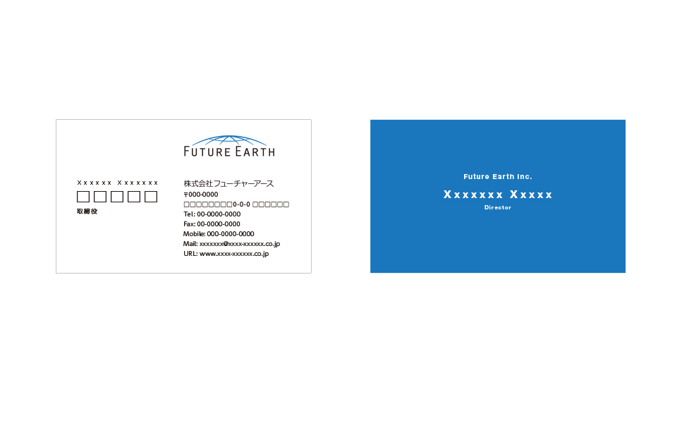 CI H. Hiroyasu Art Director | Designer OVERVIEW 社名ロゴほか[株式会社フューチャーアース様] YEAR 2018 社名ロゴマークデザインとビジネスツール等を制作させていただきました。□デザイン □DTP
