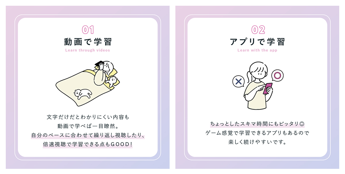 ・文字情報もできるだけ少なくするために、イラストで内容のイメージを伝え、文字数は70文字程度にとどめて読みやすさを重視しました。