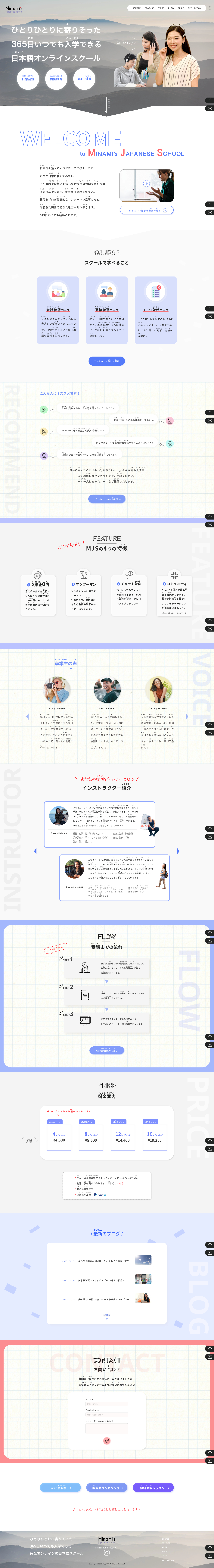 日本語オンラインスクールのサイトをデザインしました。 ◾︎使用ツール Photoshop, Illustrator, XD