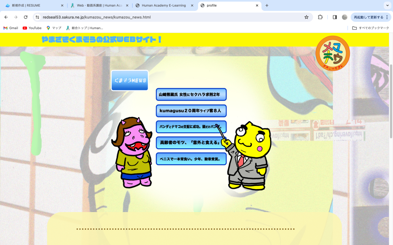 別ページではPROFILEやNEWS、自身の制作物を紹介したILLUSTページ、コンタクトフォームを添付したCONTACTページにもリンク出来るようになっています。
