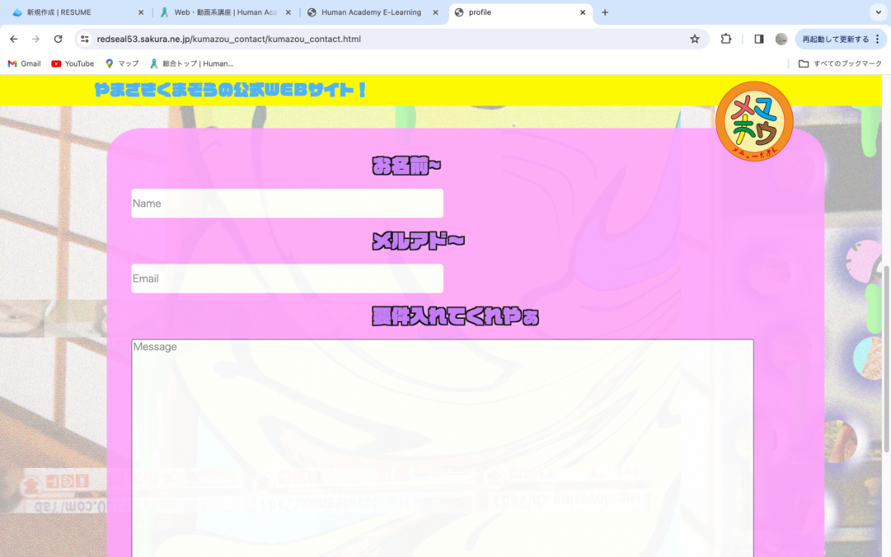 ⬆️CONTACTのページです。メールが送れる仕様となっております。