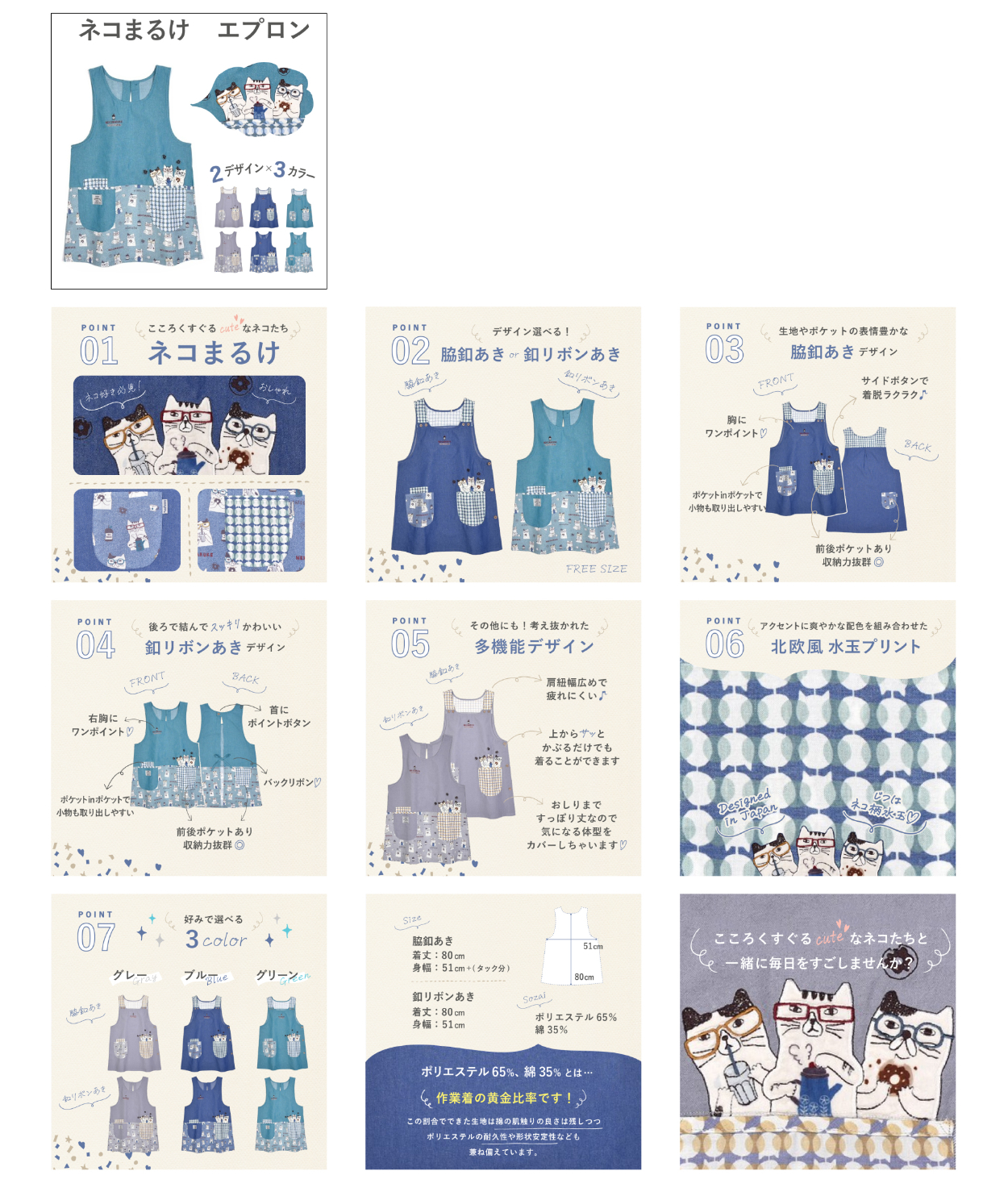 Felix Life 様の「ネコまるけエプロン」の商品ページを作成させていただきました。