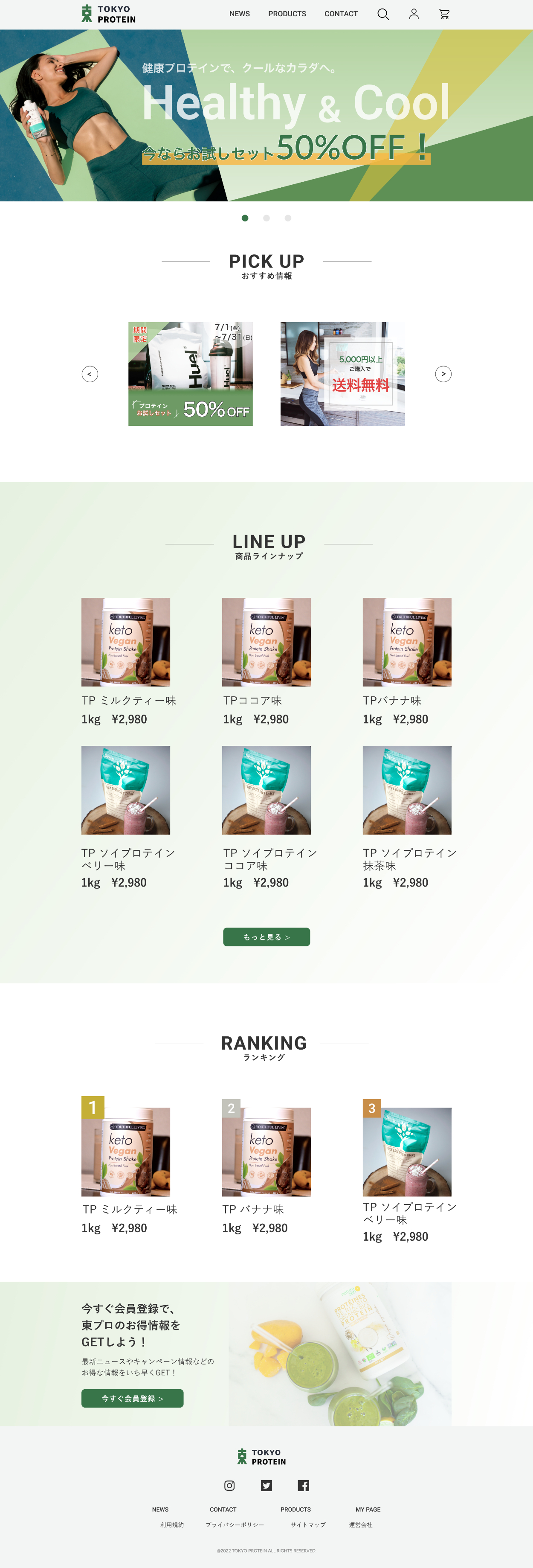 ・商品一覧ページでは、メインビジュアルのバナーの下に「おすすめ情報」を配置し、お得な情報をひと目見て分かるようにしました。