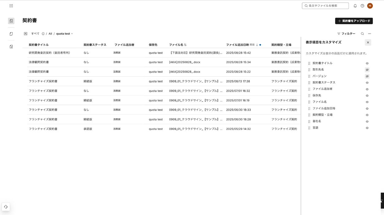 契約書一覧、締結版契約書一覧、自社ひな形一覧などの一覧系コレクション画面と、各詳細画面など、15画面を担当。