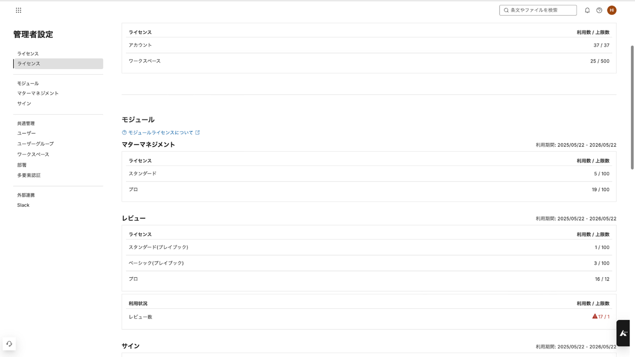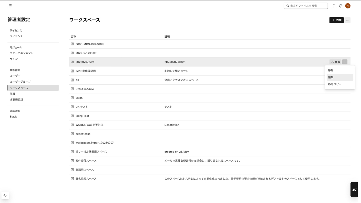 - ユーザー、ユーザーグループ、ワークスペース(フォルダ)部署などの管理者設定のUI改善