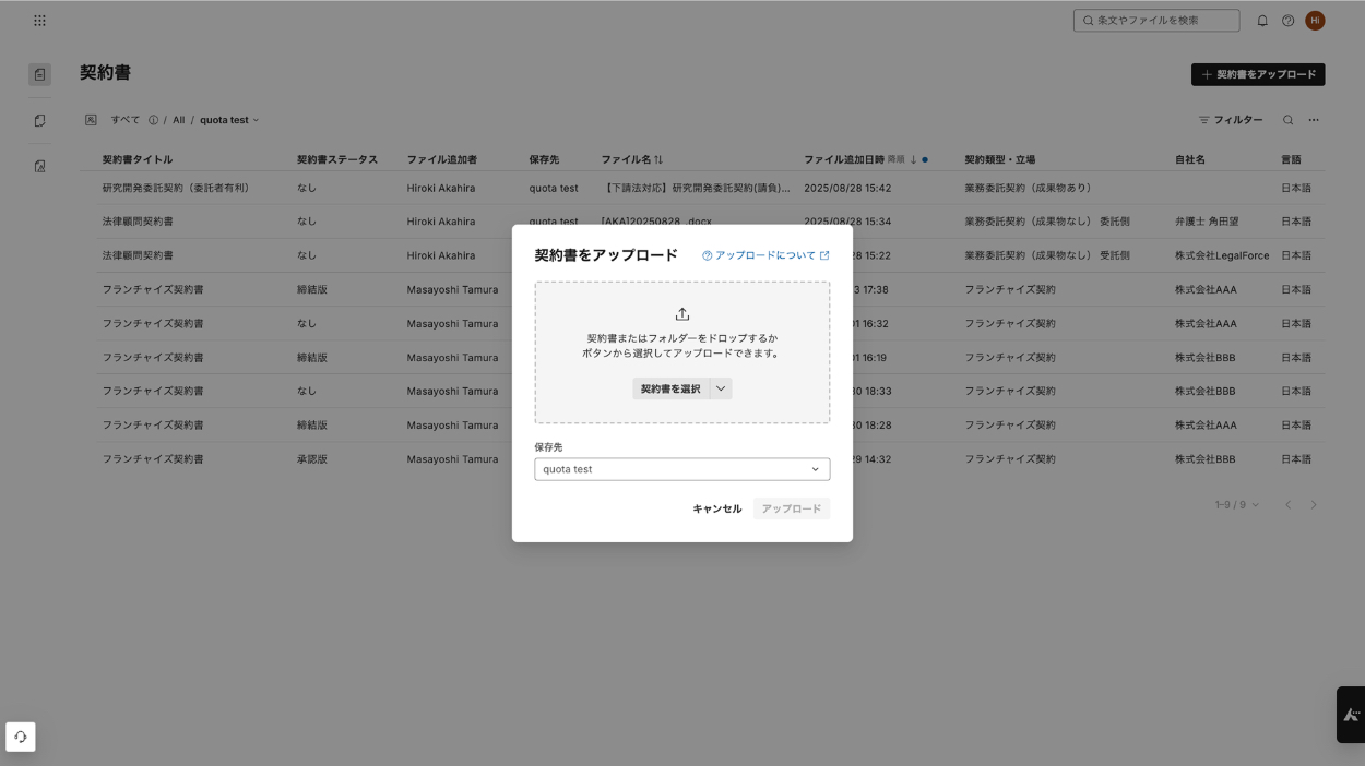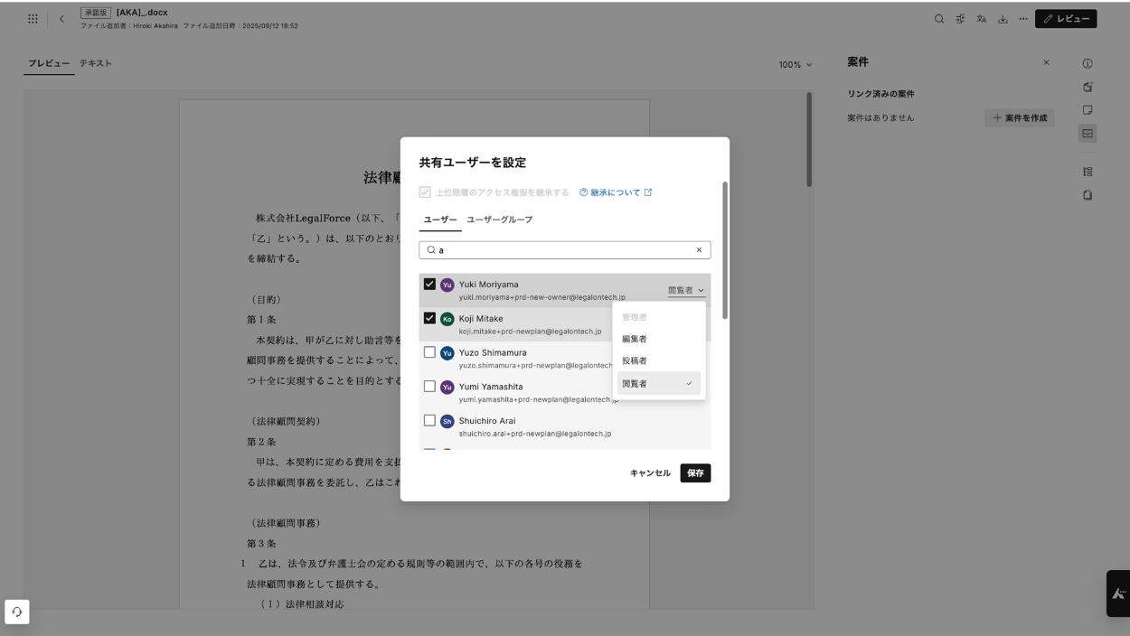 - アップロード、共有するユーザー・グループ選択など共通機能