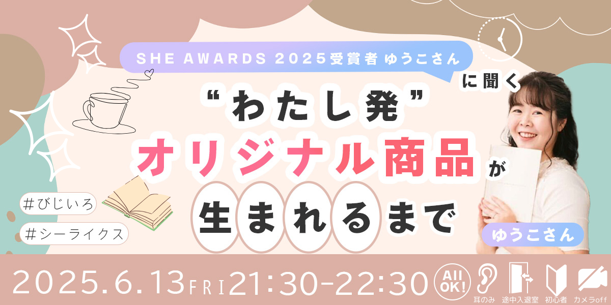 ・6月のイベントタイトル「SHE AWARD受賞者ゆうこさんに聞く、“わたし発”オリジナル商品が生まれるまで」