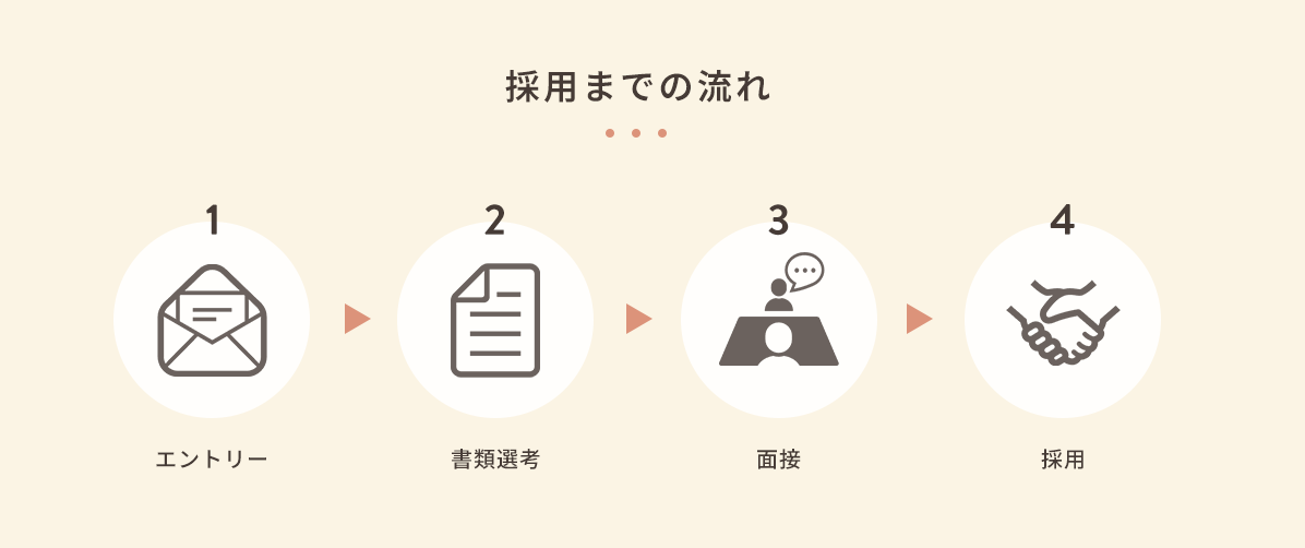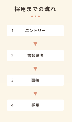 「採用までの流れ」セクションを新たに追加し、エントリーから採用までの4ステップを明記しました。それぞれアイコンを追加し、直感的に採用までの流れがわかるようにしました。