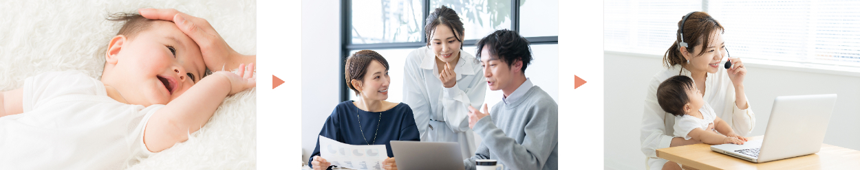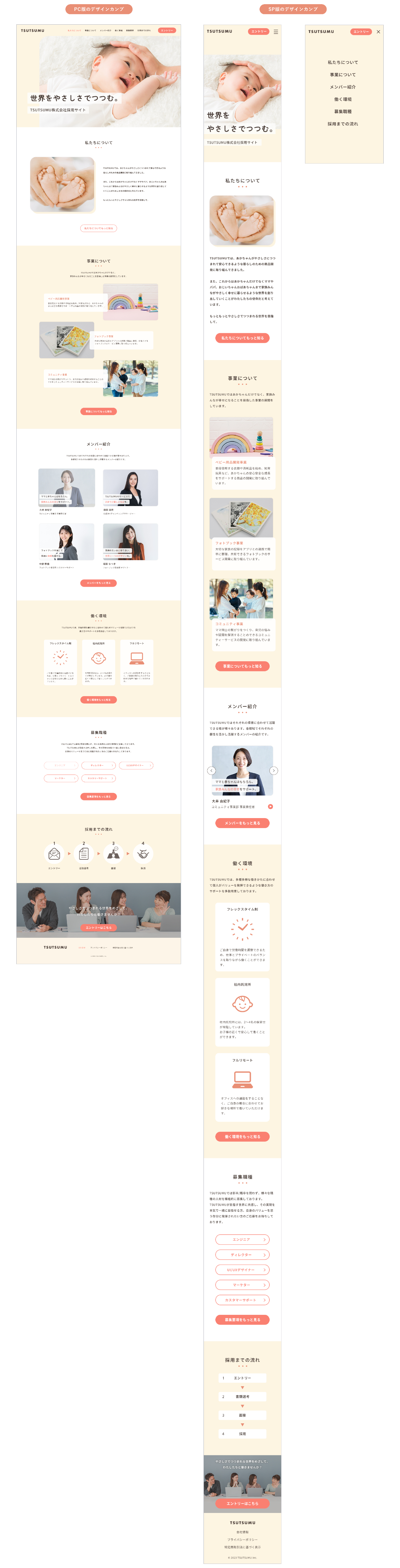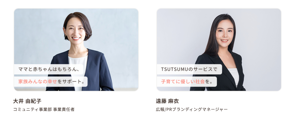赤ちゃんの他に、TSUTSUMUで働いているメンバーと子どもと一緒に在宅ワークをしている母親の写真を追加し、採用サイトであることが一目でわかるようにしました。