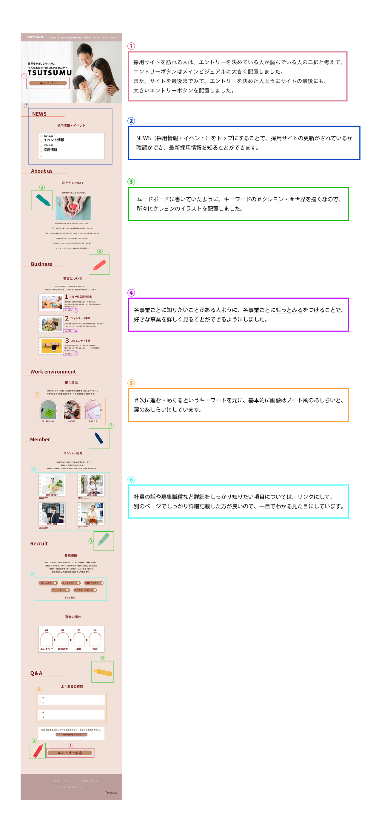 ターゲット設定・目的の明確化から、ワイヤーフレーム、ムードボード、デザインカンプ制作、コーディングまで、Webサイト制作を全て一人で行ったことで、それぞれの工程がどれほど密接に関わり合っているかを実感しました。