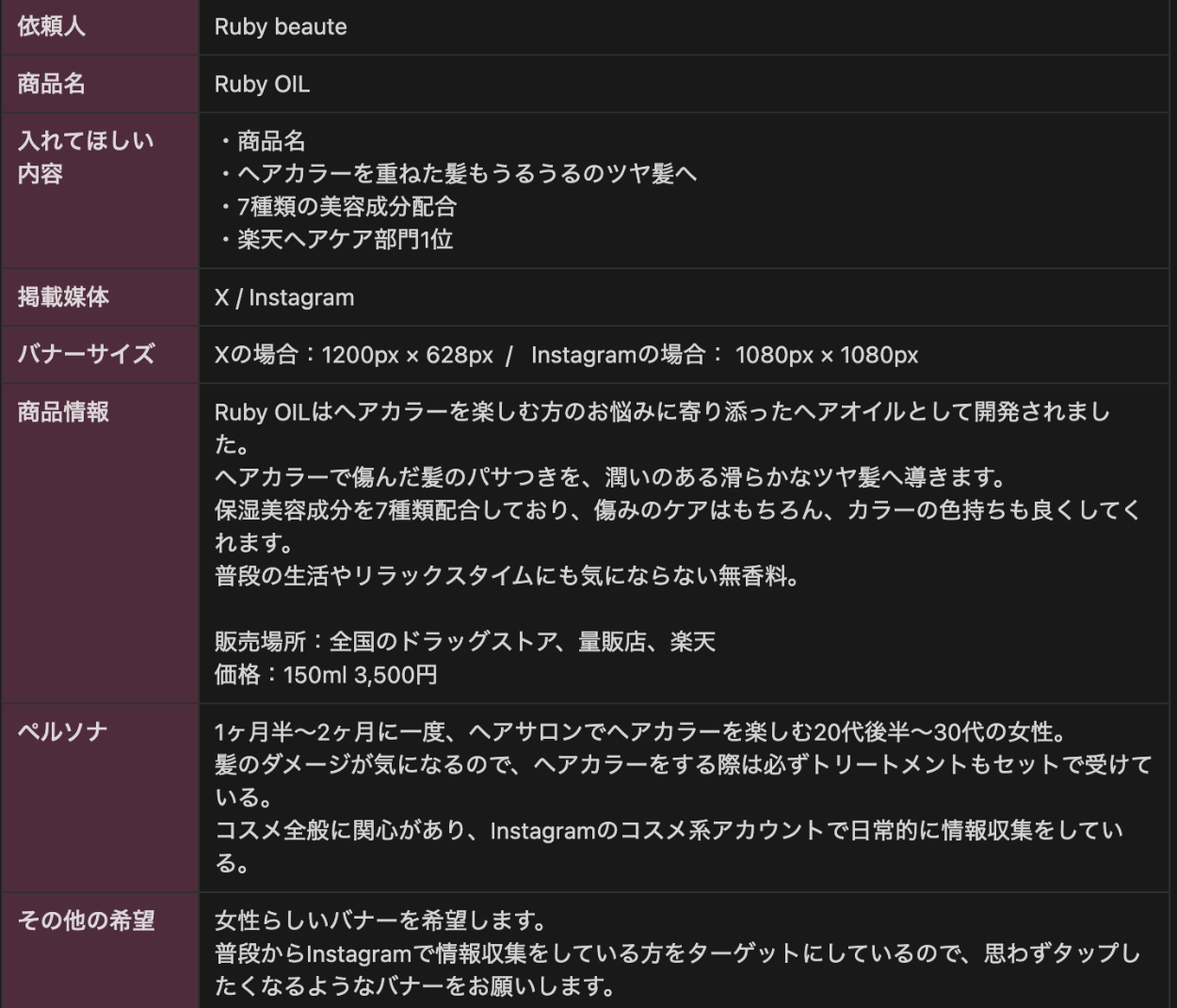 【架空案件課題】新作ヘアオイルの商品バナー MINORI OVERVIEW HerTechの課題で新作ヘアオイルの商品LP誘導バナーの制作を行いました。 YEAR 2024 要件、素材は任意課題として提供され、作成しました。【依頼内容】【制作で工夫したこと】商品画像を目立たせたいと思い、グレー系の背景「#E3E3E3」を使用しました。髪のダメージが気になる方へぜひ見てもらいたいと思い、「うるうる」という単語のみ文字の大きさ、色を変えてみました。
