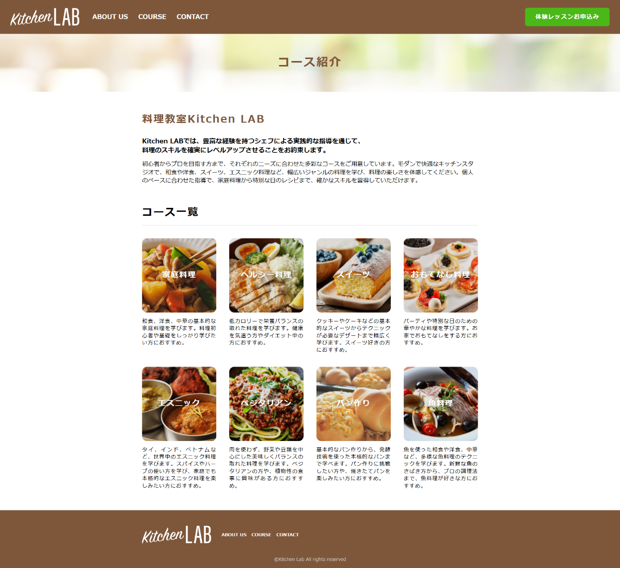 【スクール課題|Webサイト制作】料理教室(架空)