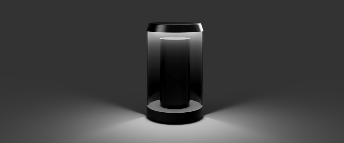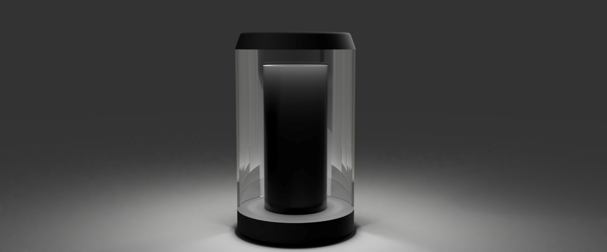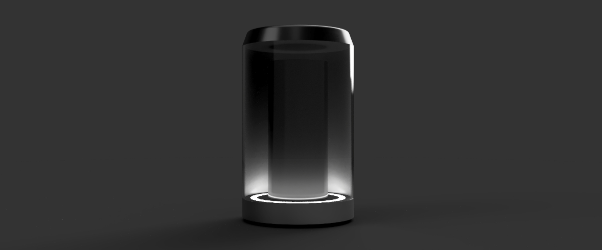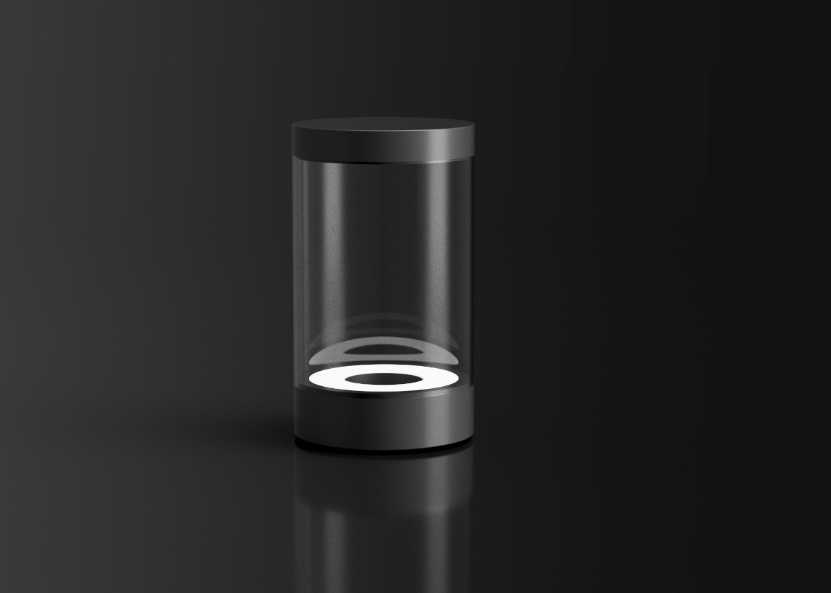 検証からケース形状は円筒型で中のレンズを強調するためにシンプルなものを採用