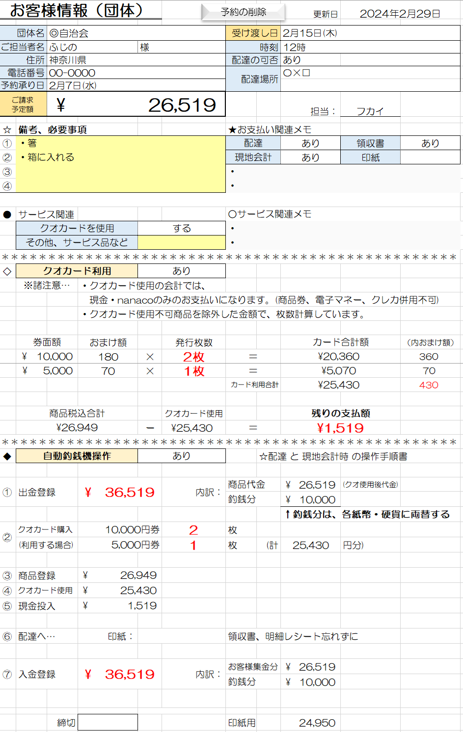 クオカードを使用してのお支払いをお勧めし、