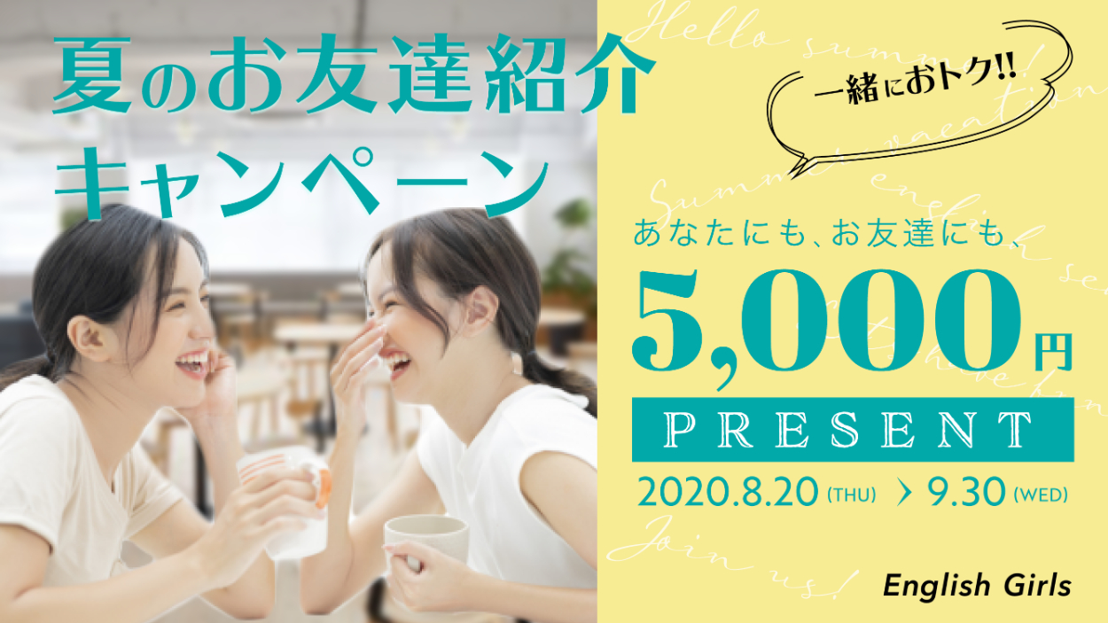3 . 友達紹介キャンペーンなのでお友達と一緒に入って楽しめるような印象を想起するターゲット女性像をメインイメージとして配置して、英会話スクールは背景と英語筆記体を並べた文字デザインを用いて想起させました。(あしらい)