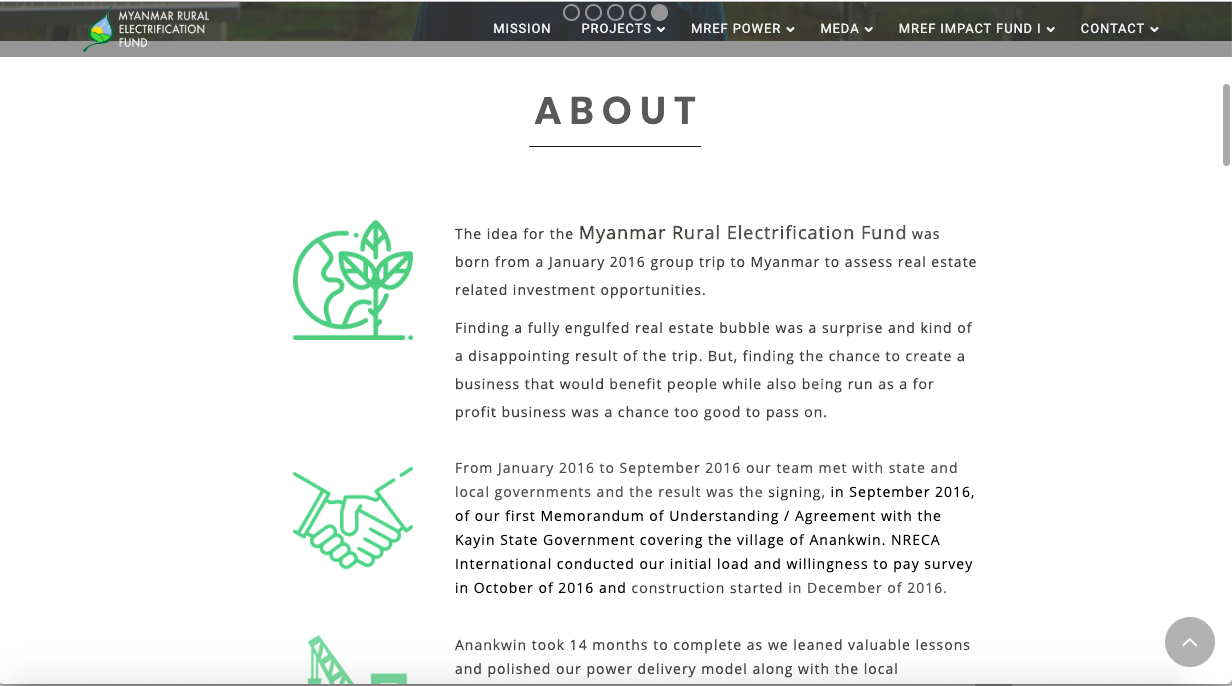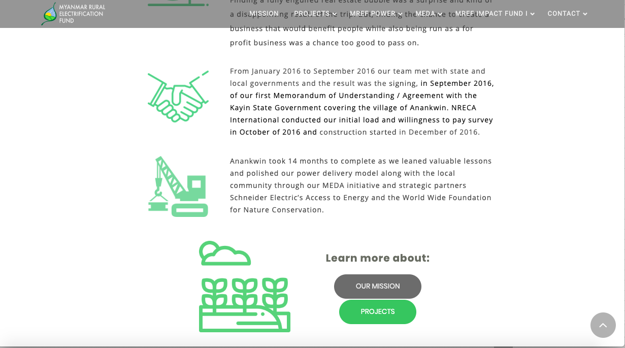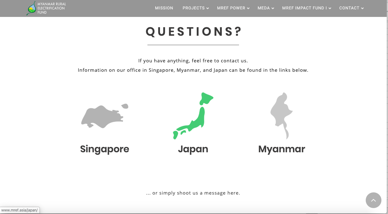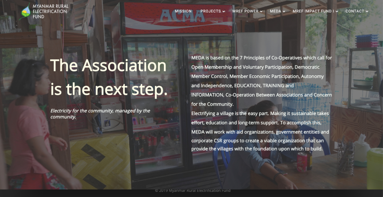 Myanmar Rural Electrification Fund Kisetsu Irie Web Designer/Photographer OVERVIEW Myanmar Rural Electrification Fundのホームページ。Wordpress。 YEAR 2019