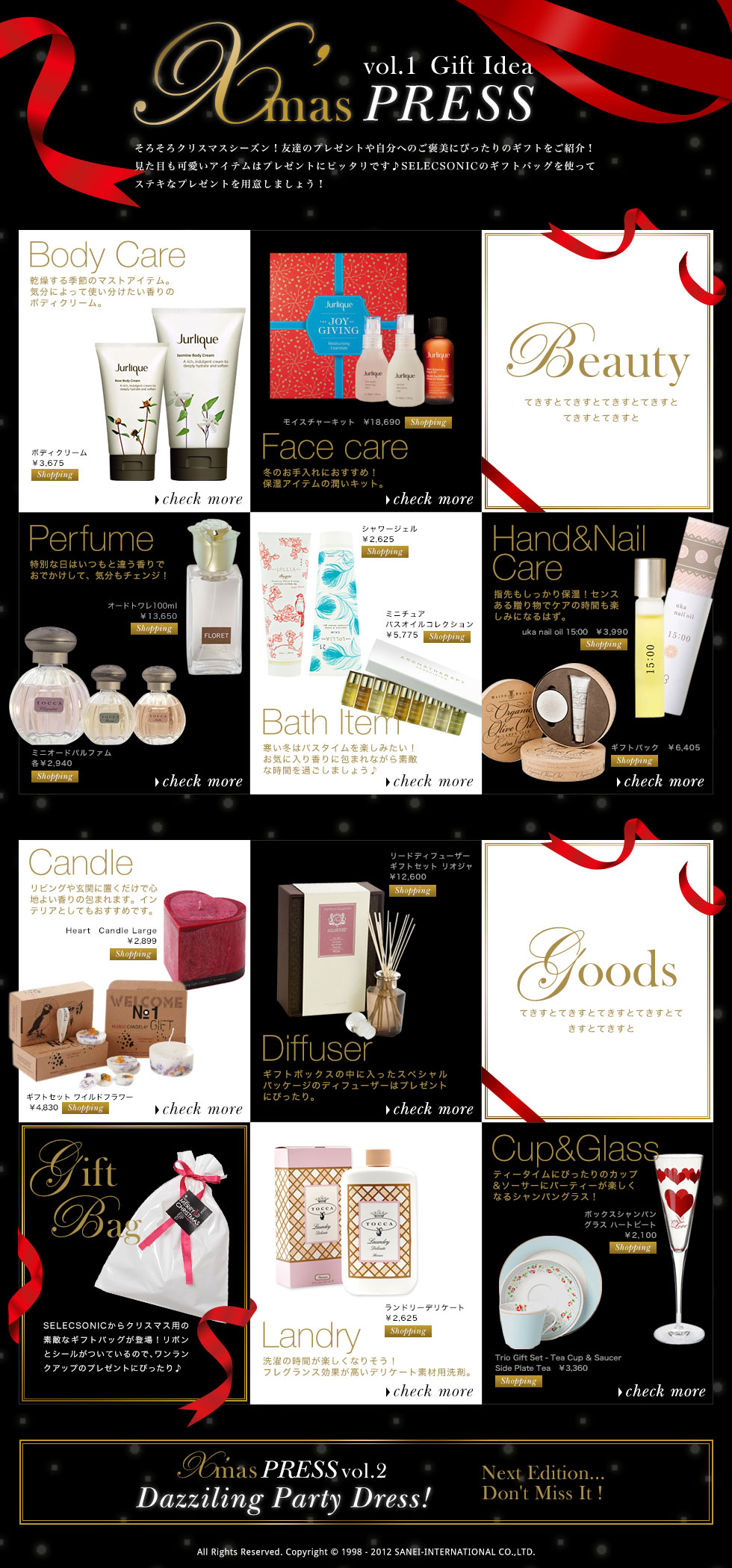 プレゼント需要のあるビューティーアイテムのクリスマス特集ページを制作しました。