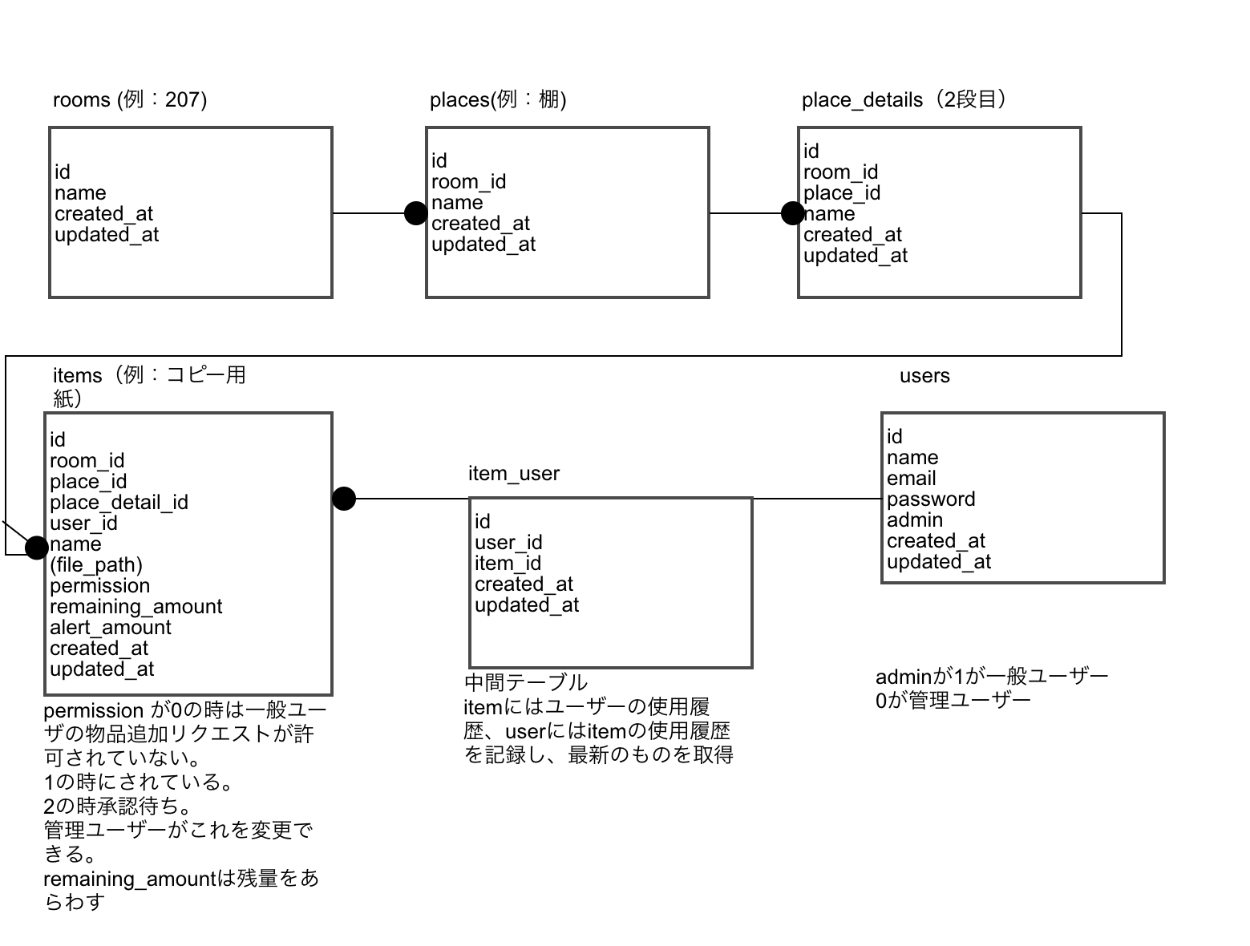 一般ユーザーと管理者ユーザーの区別はUserのAdminという項目で区別していますが、より明確に分けるならば管理者用のUserテーブルを作るべきであったかもしれません。