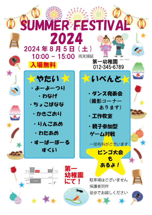 架空の幼稚園で行う縁日のチラシを作りました。(illustrator)約2時間
