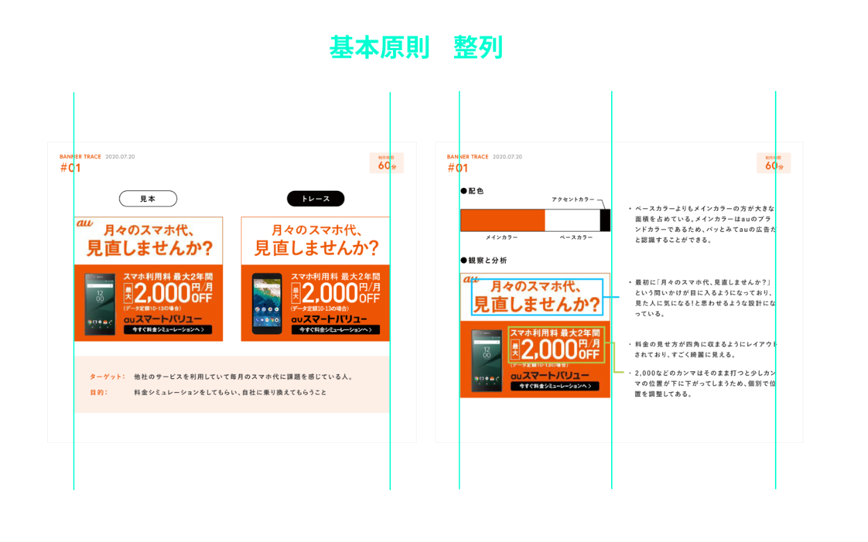 バナーをトレースする際はもちろん、まとめを制作する際にも自分出てを動かしながらデザイン基本原則をどのように活用すればいいのかを学ぶことができた。
