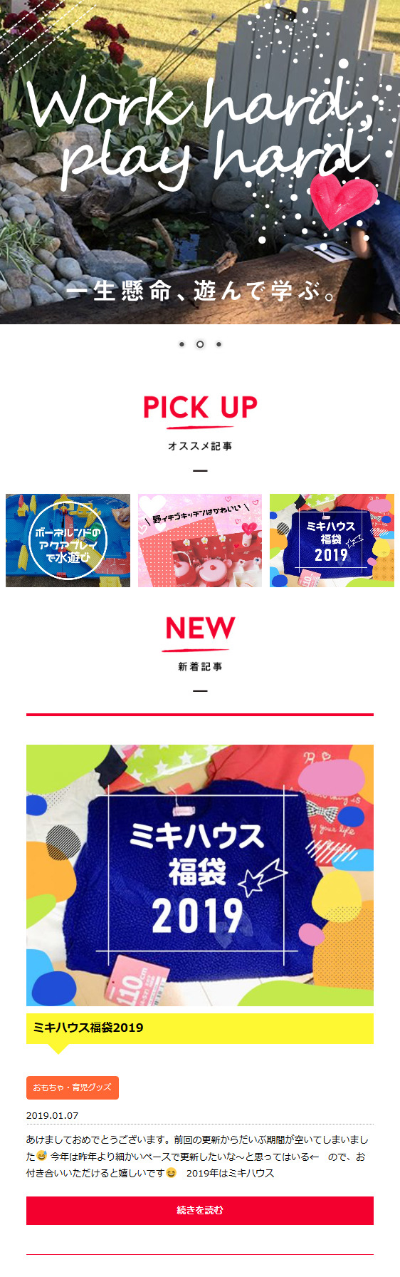 WORDPRERSSを使用したオリジナル育児ブログの制作です。