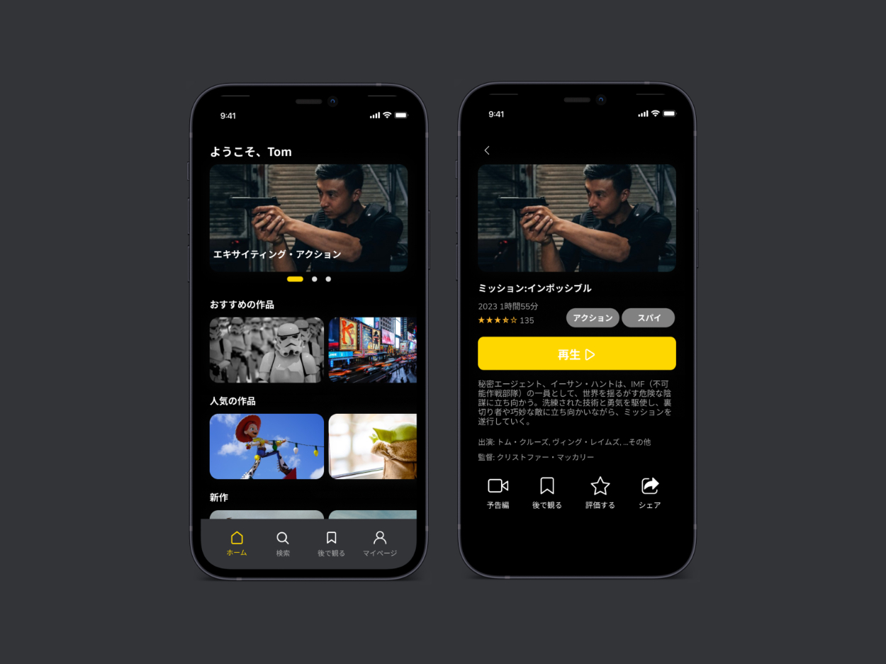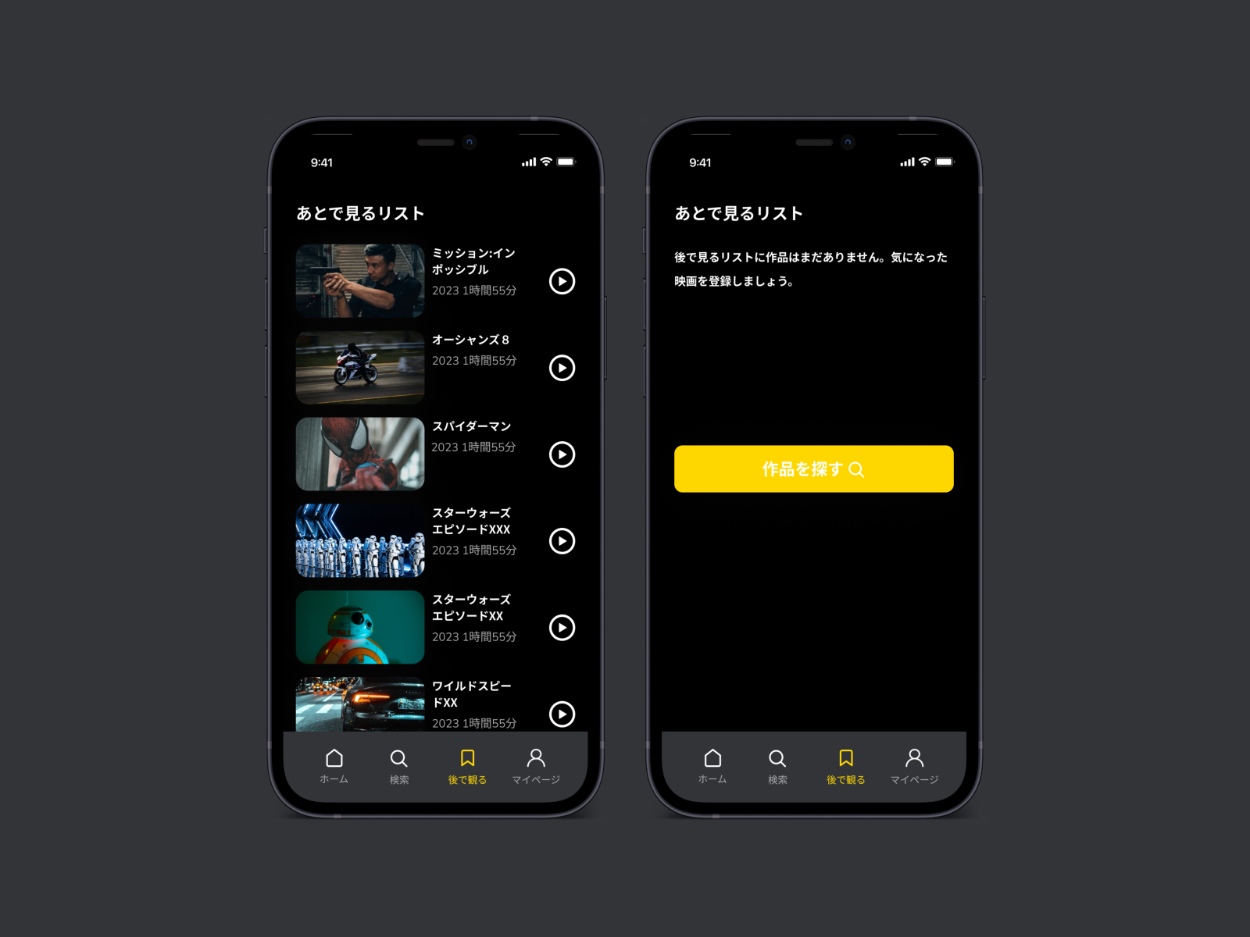 ・あとで観るリストは、既にリストに追加されている作品なのでユーザーがすでに興味を持っているため、再生ボタンを置いてすぐに作品を見始められる ようにしました。