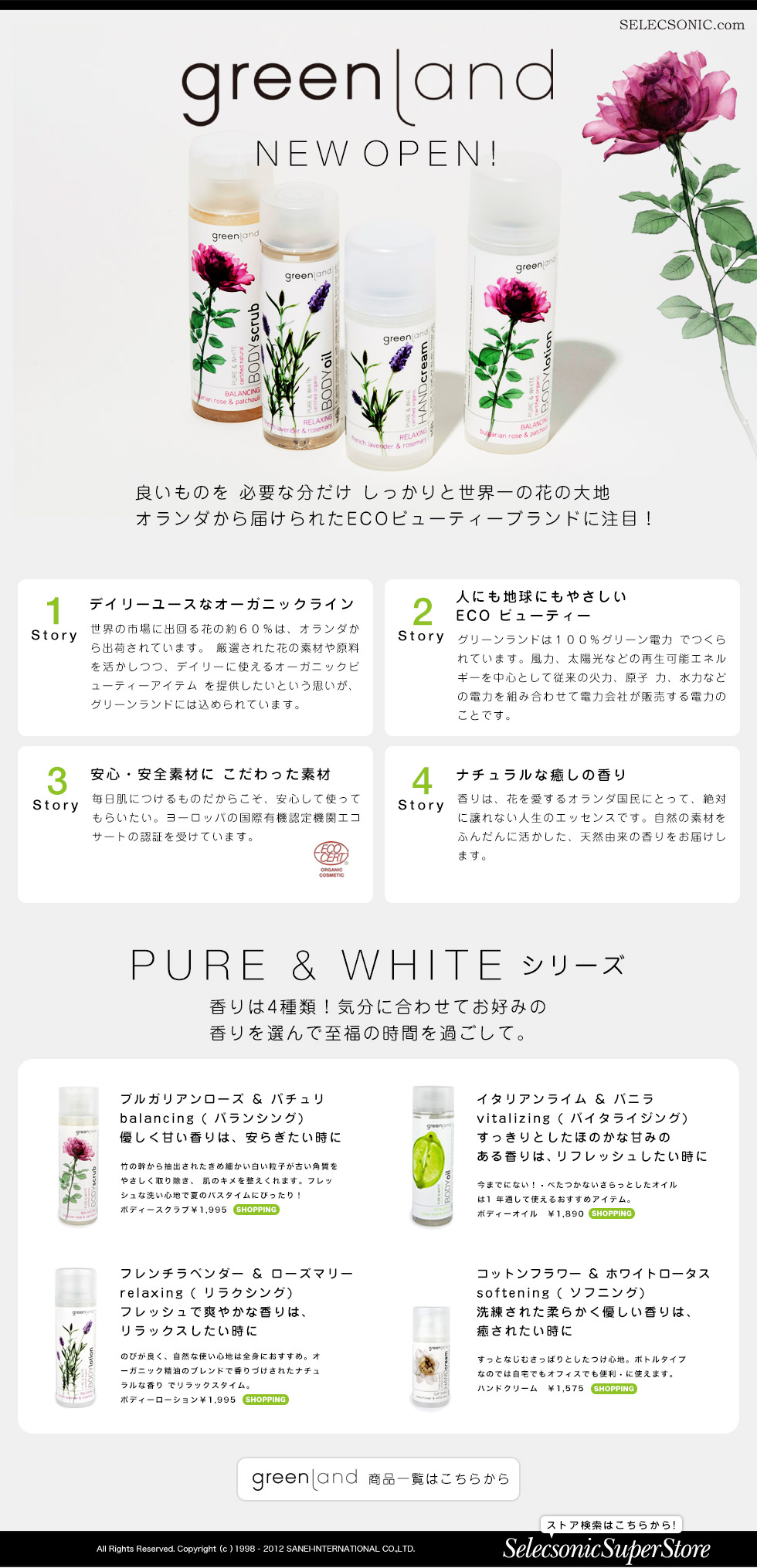 【ランディングページ】サンエーインターナショナルECサイトselecsonic.com特集ページ