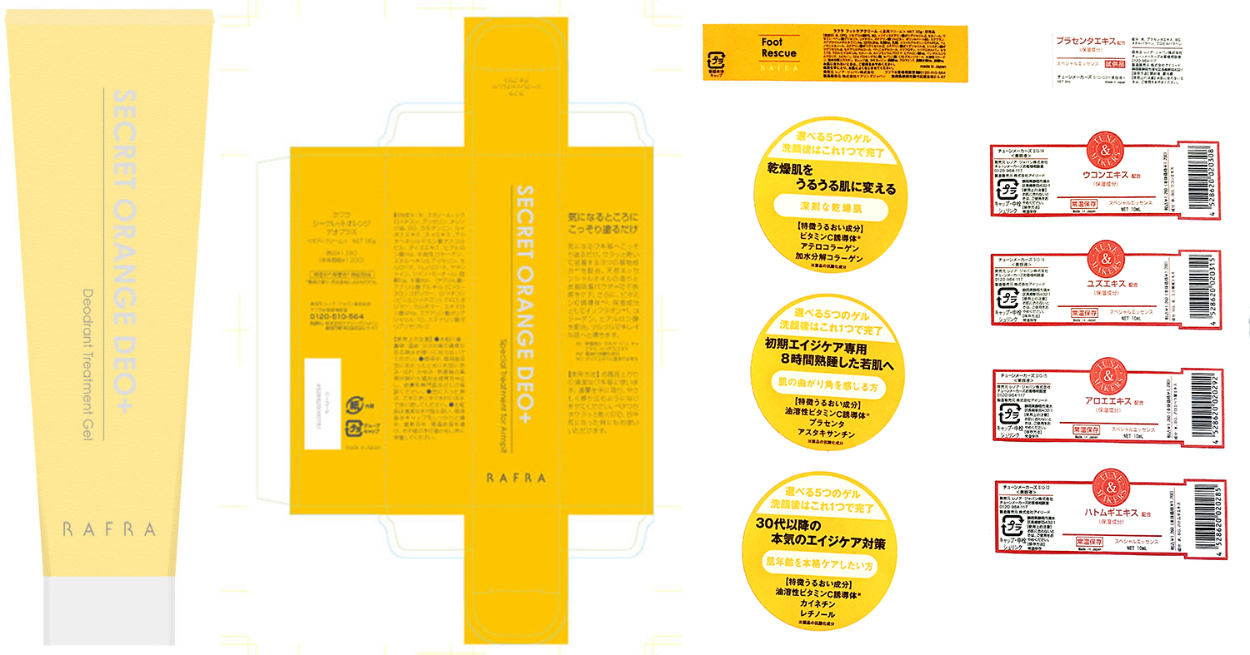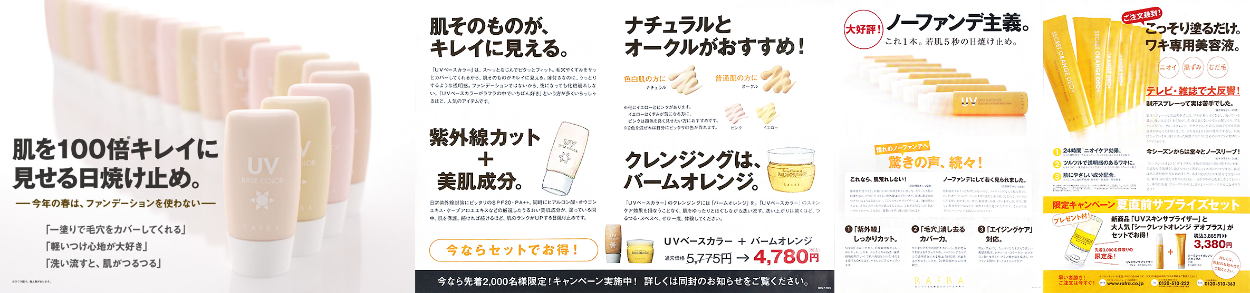 インハウスデザイナーとして、店頭什器、折込チラシ、DM、パッケージデザイン、ECサイトなどを制作(当時のデータが手元になく、実物を撮影したものと混在)