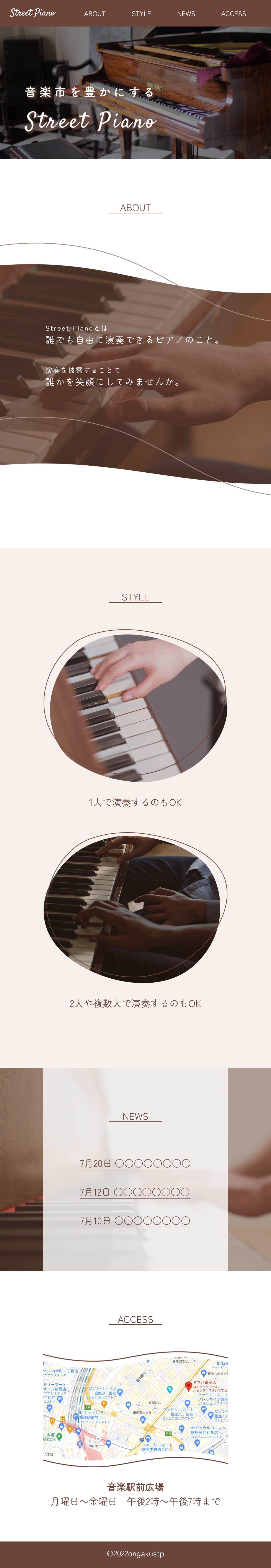・メインビジュアルのピアノが目立つよう、文字が重ならないように配置しました。