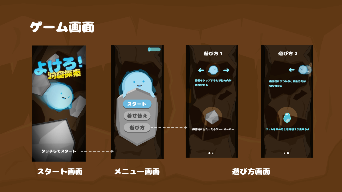遊び方は分かりやすくするために図と文字で説明し、注目してほしいところを明るめにしました。