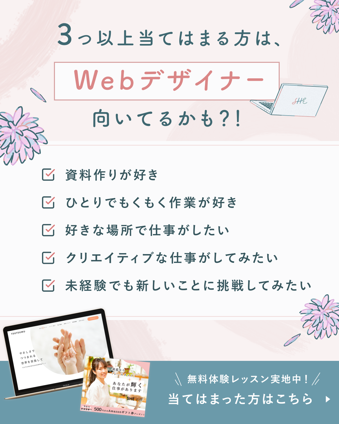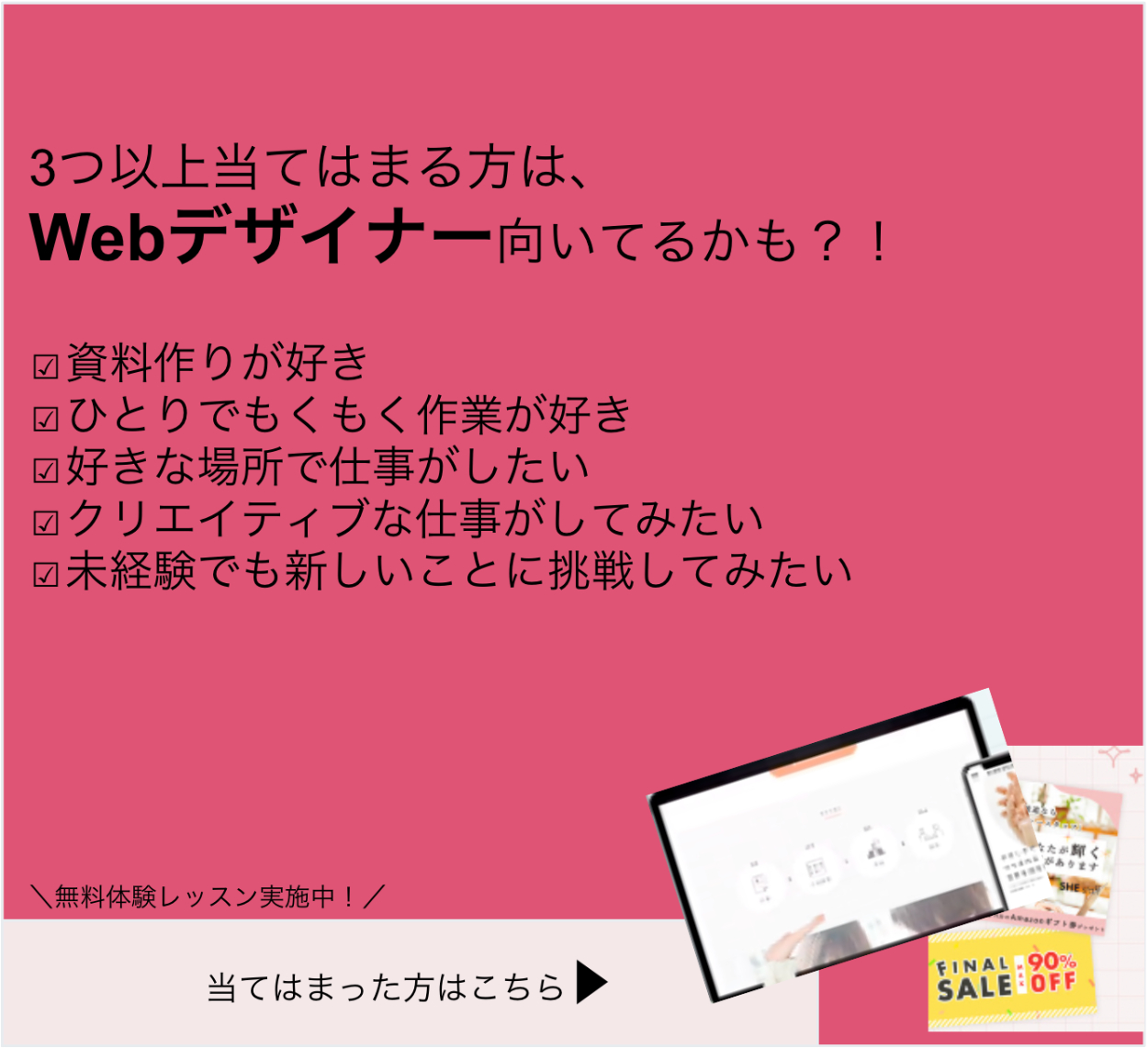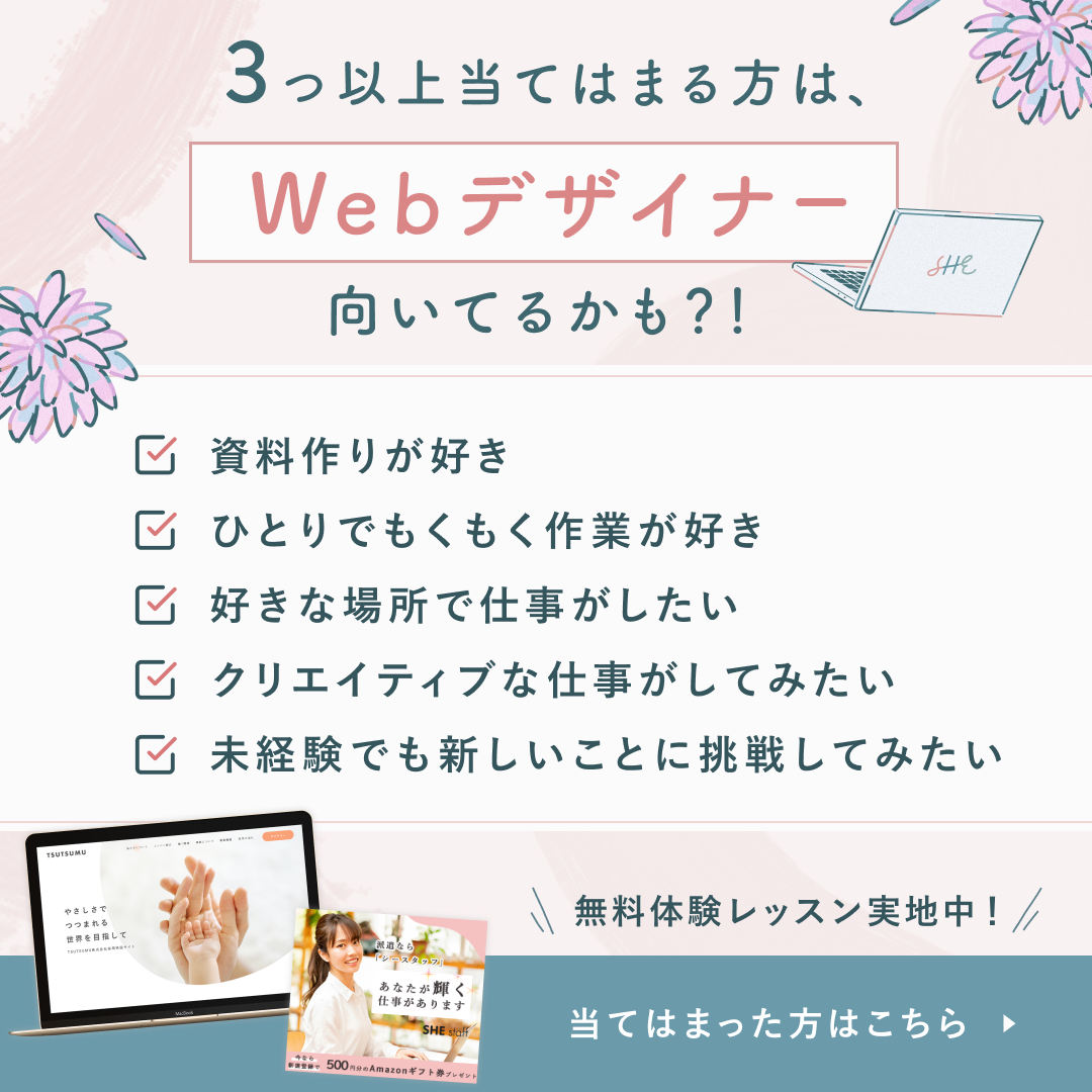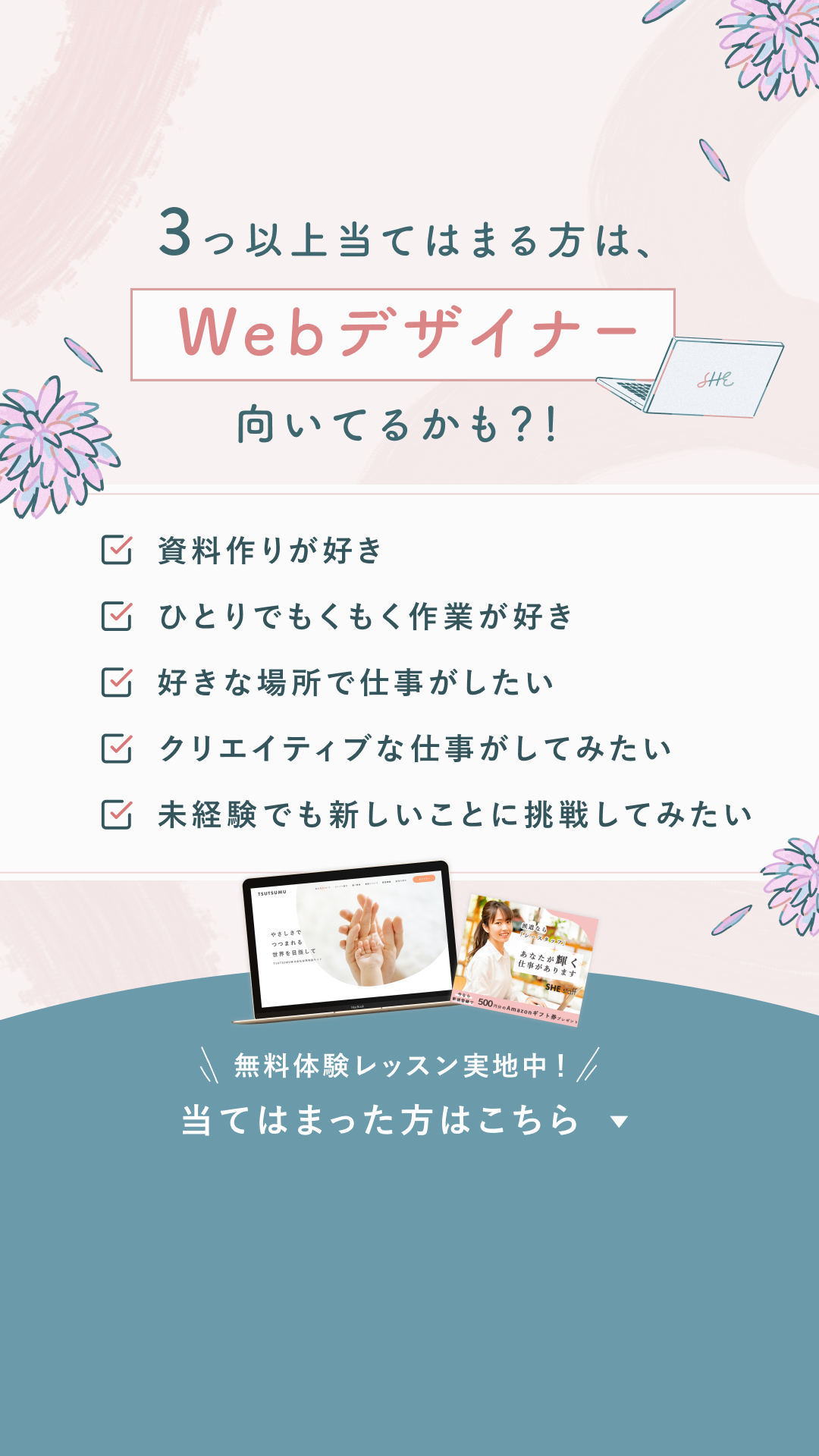 SHE株式会社様が運営する女性向けキャリアスクール「SHElikes」体験レッスンへの誘導を目的とした広告バナーを制作しました。 使用ツール:Figma/制作時間:約2時間