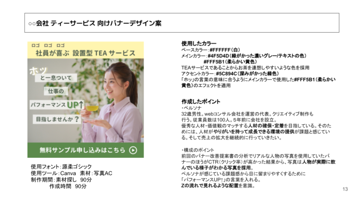 ▶改善提案書でわかった仮説を取り入れたオリジナルバナー案