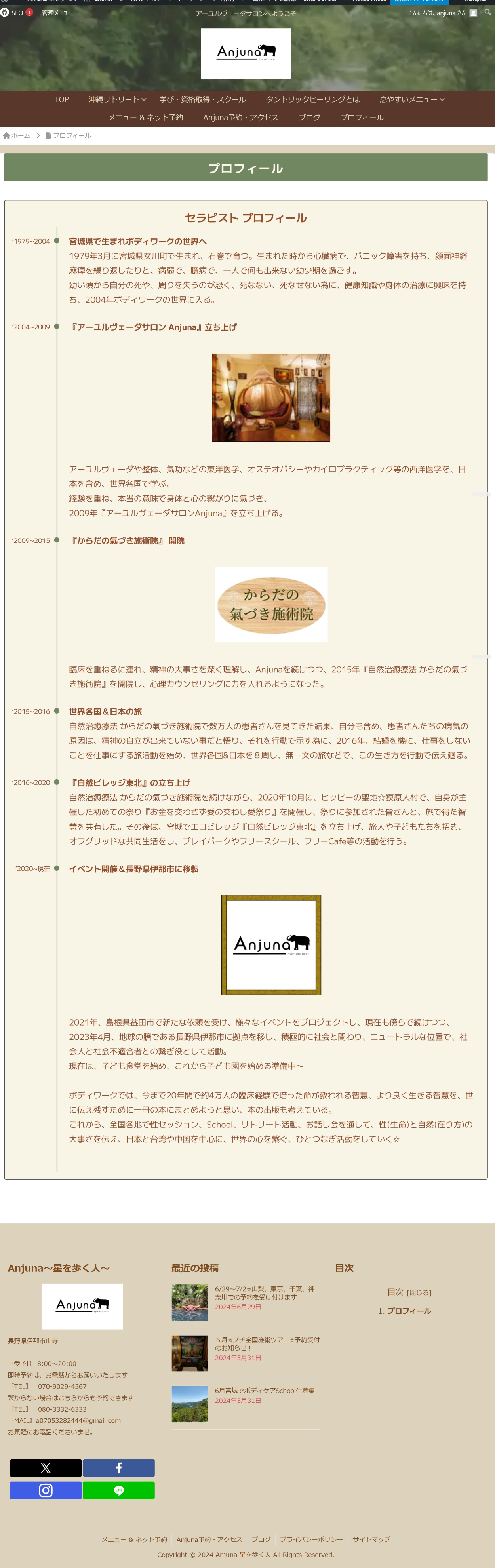 アーユルヴェーダやタイ古式マッサージ・リラグゼーションサロンをされているAnjuna様のHPをリニューアルしました。デザインとコンテンツは私が制作し、ライティングはご自身の言葉で執筆されました。(Word Press / テーマcocoon レスポンシブ)