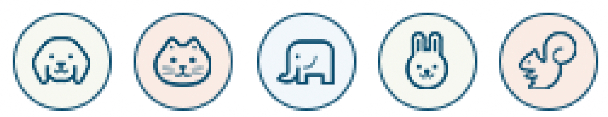 ❶ フリー素材を使用して自作した動物のアイコンを各見出しに配置しました。