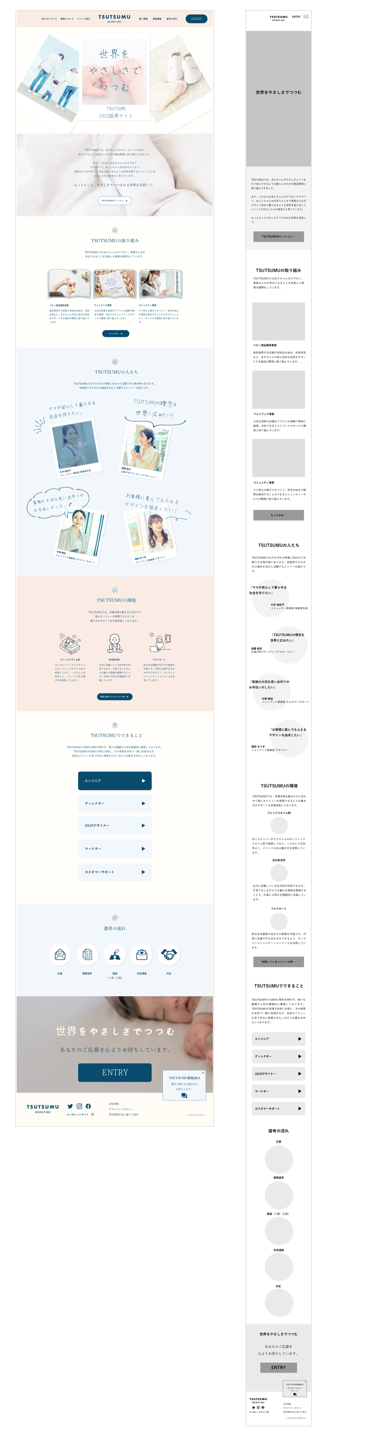 TSUTSUMUという企業名を繰り返すことでユーザーの記憶に残るだけでなく、細部にこだわることで企業が採用に力を入れていることをアピールできると考えました。