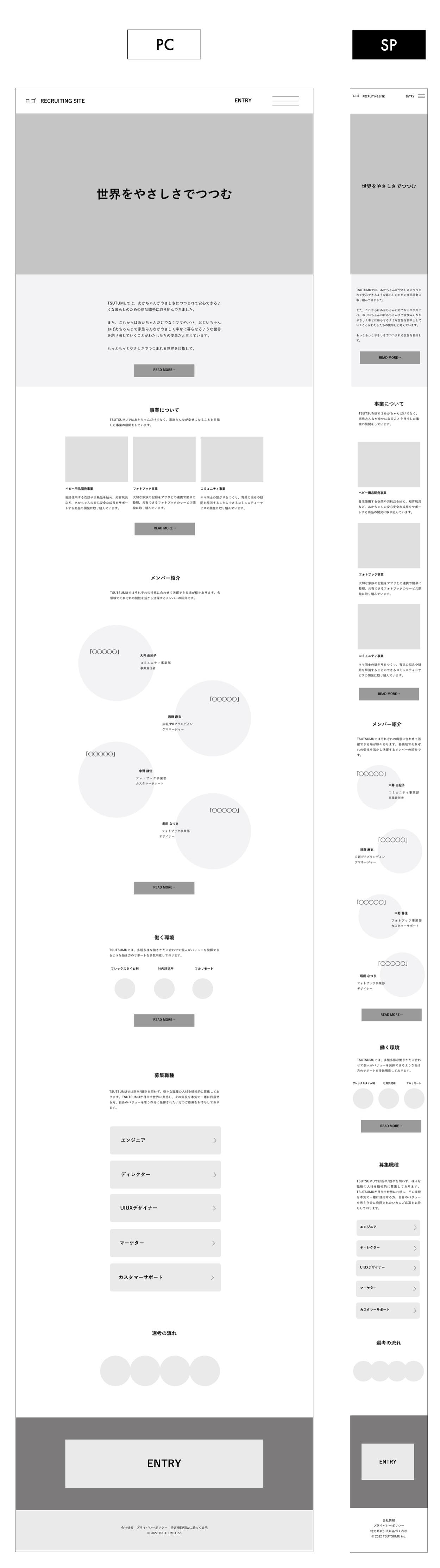 採用サイトのため、見出しはきちんとした印象を与える游明朝を使用。本文も可読性の高い游ゴシックで統一しました。どちらもコーディングのしやすさを意識して選択しました。