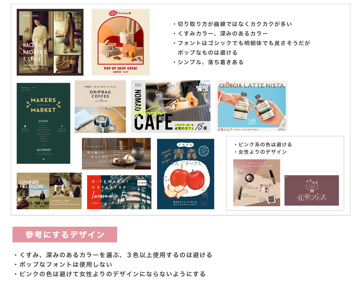 ■ムードボード(“大人” "シンプル"のワードでバナーを集めデザイン方向性を決める)