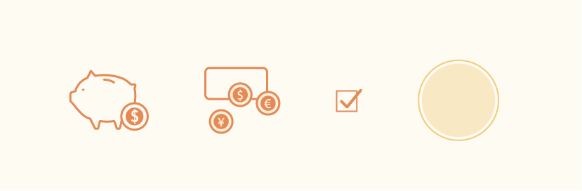 「貯金」を連想させるものとしてお金や貯金箱をあしらいとして使用。
