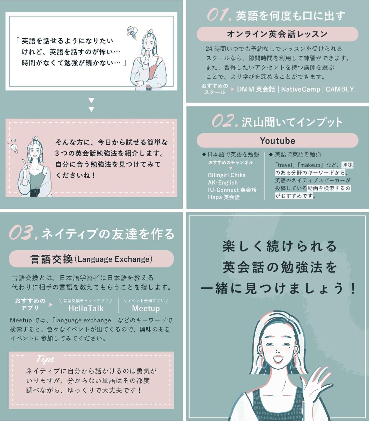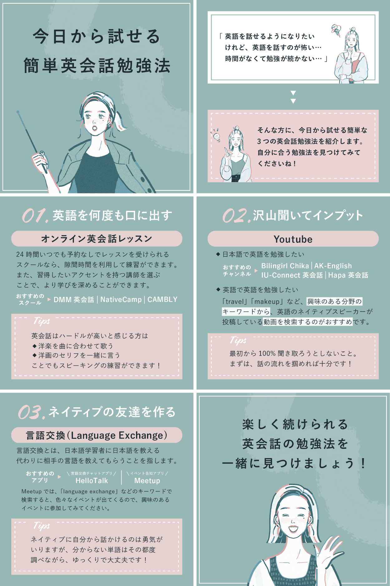 「今日から簡単に試せる」というタイトルに沿って、携帯でできる・隙間時間にできる・あまりお金がかからない勉強法を選びました。