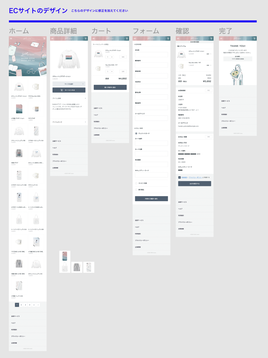 SHE likes MULTI CREATER COURSE 6つ目の課題です。架空ECサイトのUI/UX改善提案に取り組みました。ペーパープロトタイプの作成、Figmaを用いてデザインカンプ、UI/UX改善提案資料を作成しました。 (制作時間 20時間)