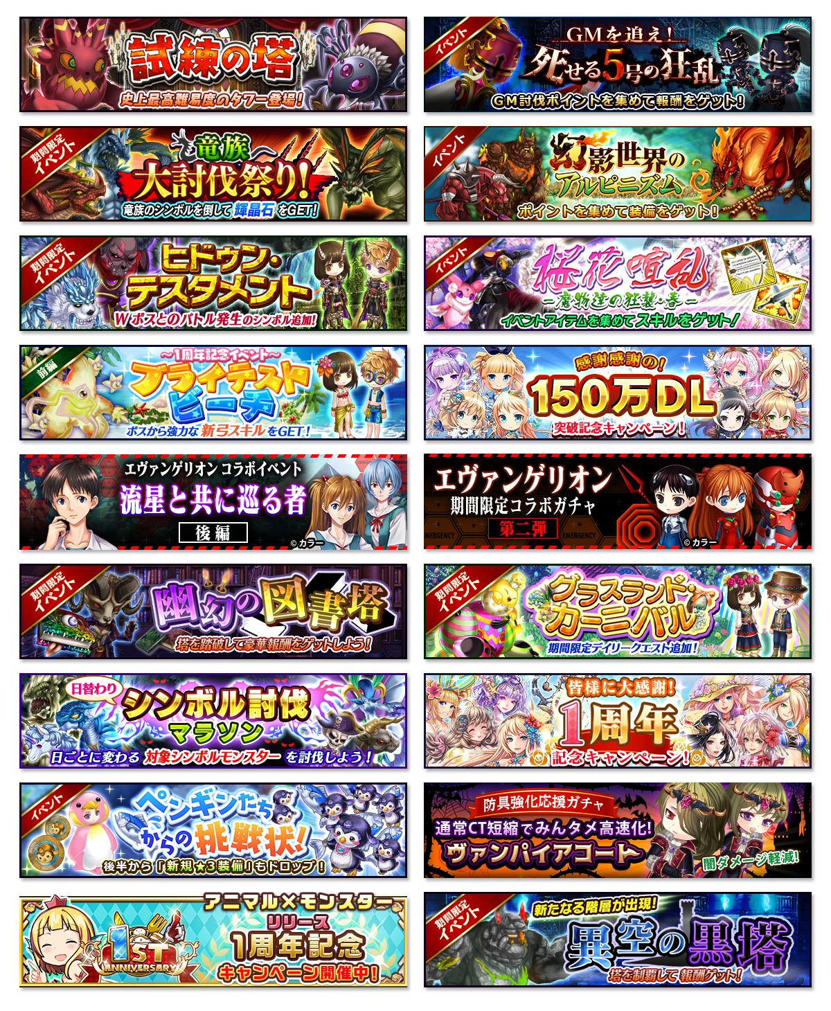毎週イベントが更新されるのに合わせ、タイトルロゴも同時に作成していました。一目見てイベント内容と訴求が伝わることを意識しながら行いました。
