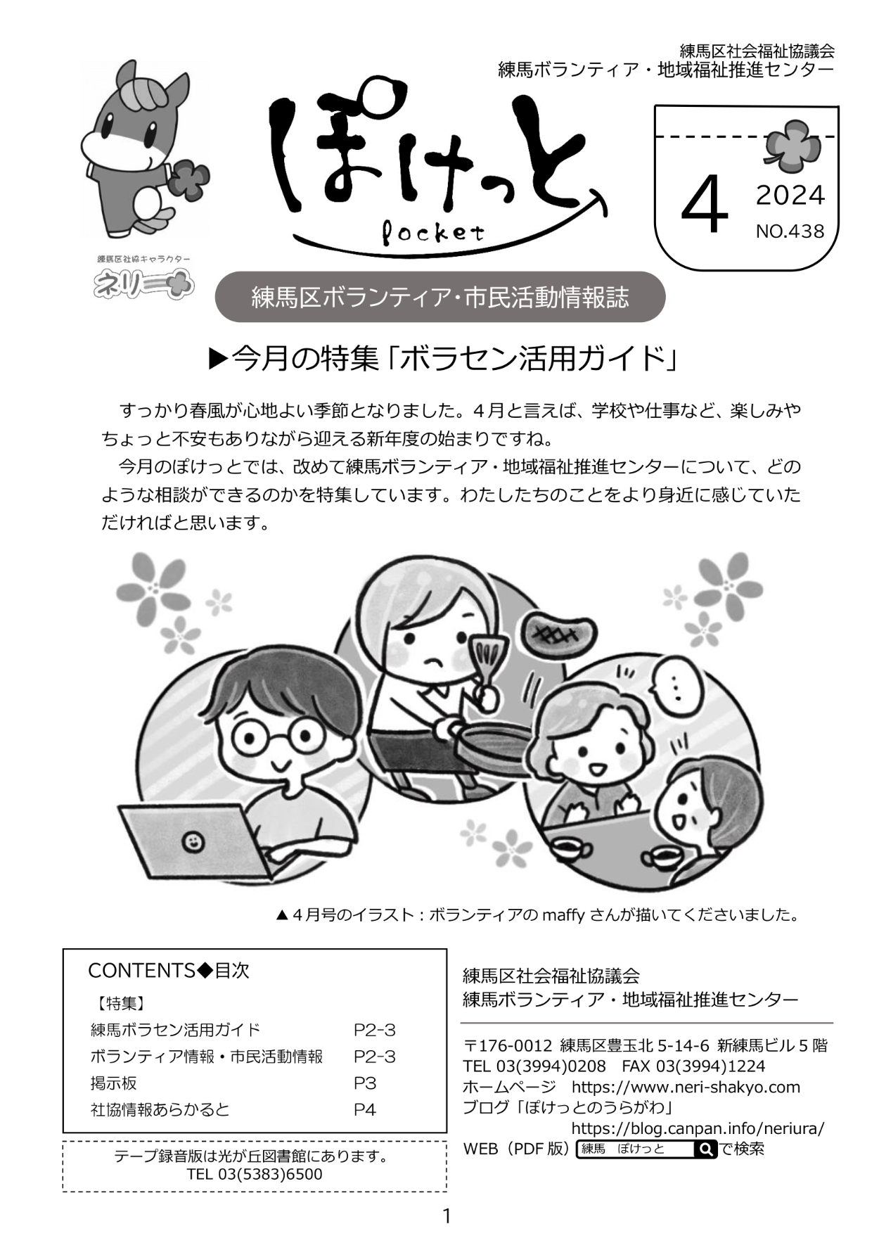 練馬区社会福祉協議会・ボランティアセンターが発行している広報誌「ぽけっと」の表紙イラストを有志で制作させていただきました。[制作時間:3時間 / 制作期間:1日間 / 使用ツール:Procreate]