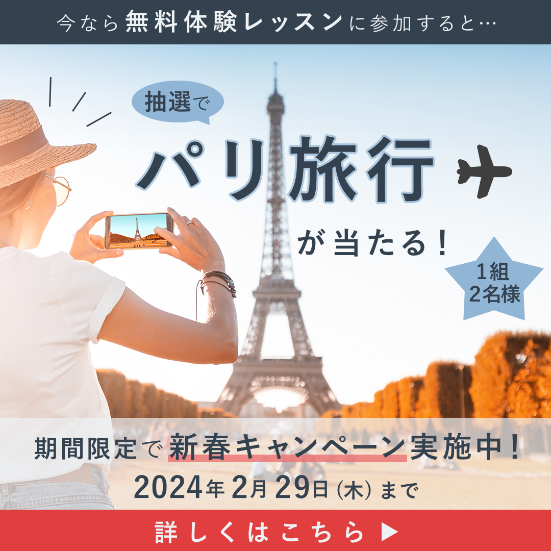 パリ旅行が当たるキャンペーンを実施していることをLINEで配信し、無料体験レッスンへの参加を促す。