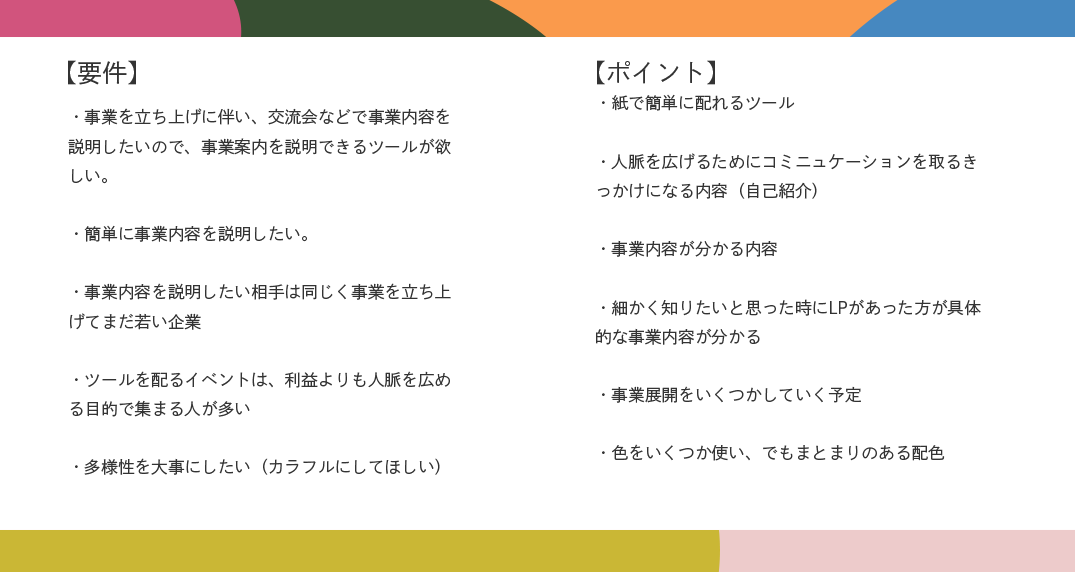 カラフルにをいう依頼だったが、異業種交流会で使用することや、