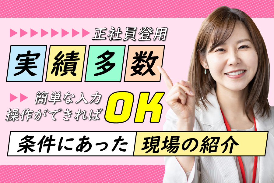 - 訴求:⇓マスト⇓ ・賞与年2回 ・残業ほぼ0 ・年間休日120日 ⇓入れられたら嬉しい⇓ ・未経験大歓迎 ・長期的に働きやすい環境 ・福利厚生充実