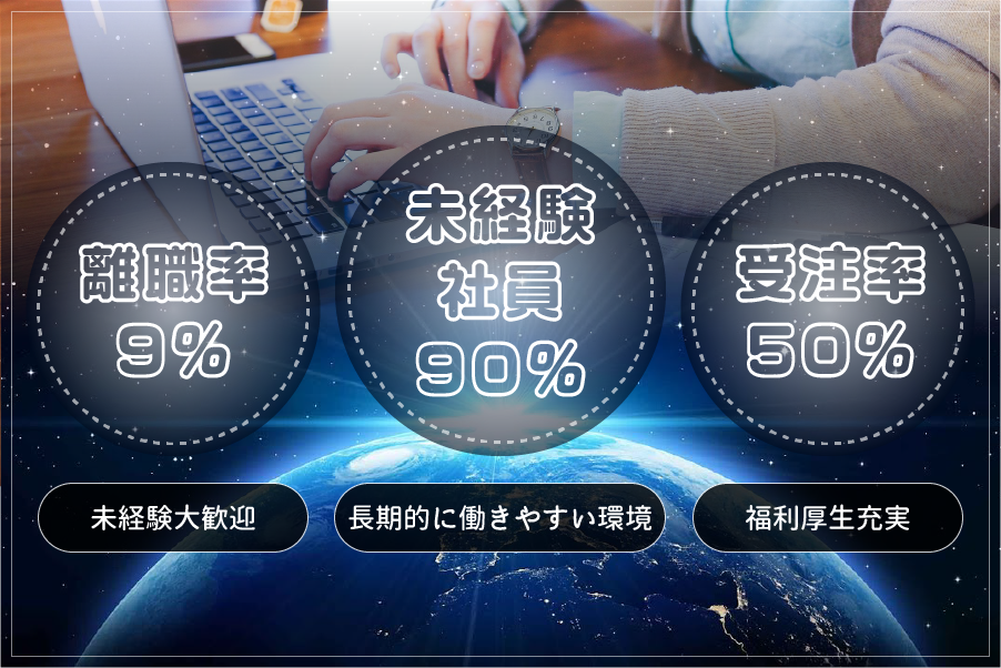 - イメージ:先方のHPのような宇宙を連想する(https://www.rspace.info/)、色は暗めの背景に、白い文字など、宇宙ぽく ・訪問営業のお仕事(宇宙×営業 がモットー)