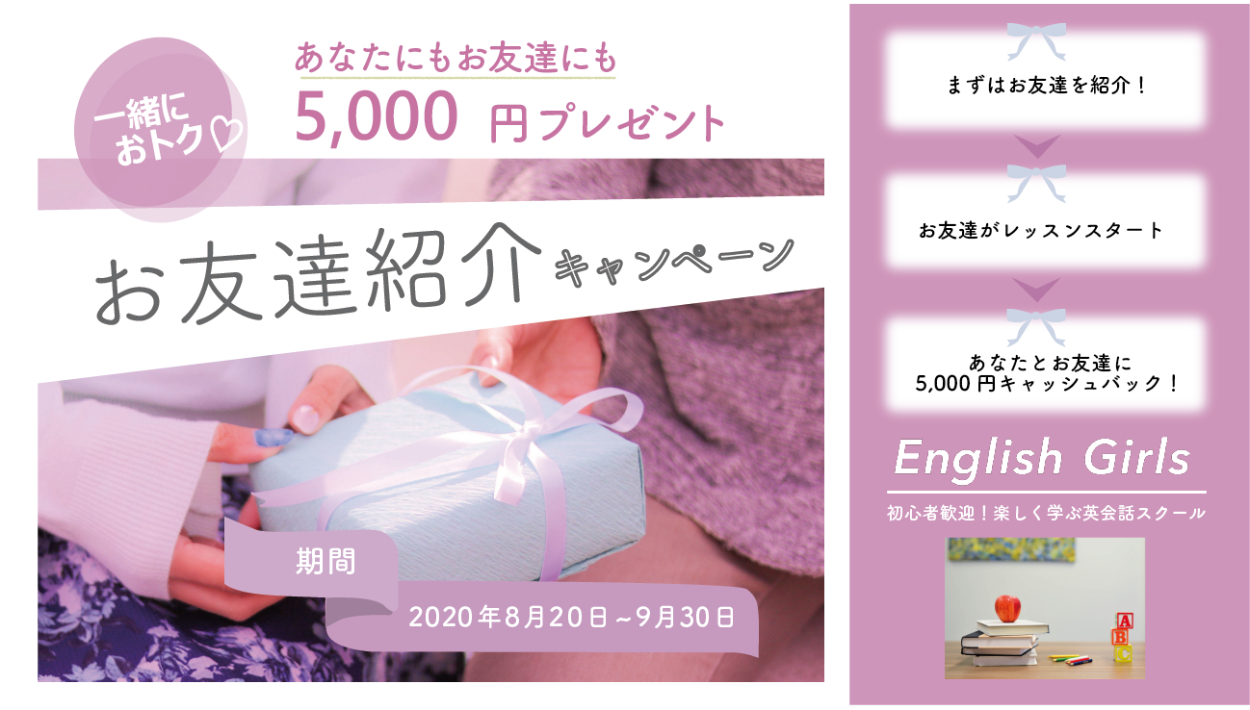 2021年4月、架空案件。クライアントからの依頼を想定したバナー制作。英会話スクールの「お友達紹介キャンペーン」に関するバナー。