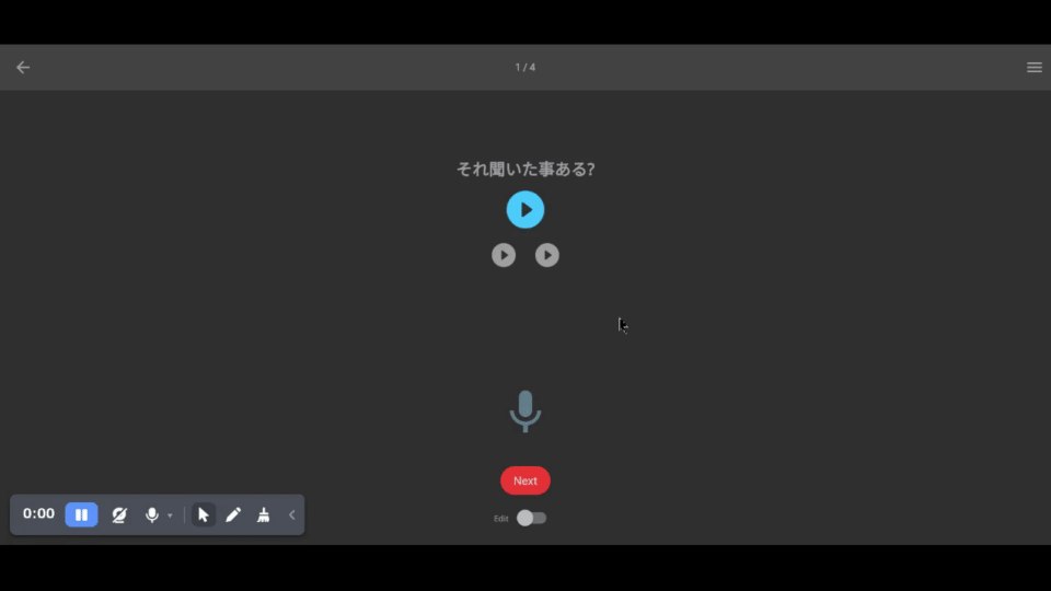 1. ネイティブの音声の真似をし正しく言えたかを審査できる機能。