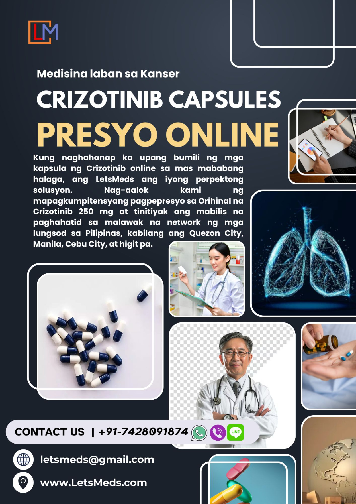 When it comes to purchasing Crizotinib 250 mg capsules online, finding a reliable and affordable source is crucial. LetsMeds is your ideal solution for acquiring Original Crizotinib at competitive prices, ensuring you get the best value for your money. Whether you're seeking treatment for non-small cell lung cancer or other related conditions, we provide prompt delivery services across a wide network of cities in the Philippines.
