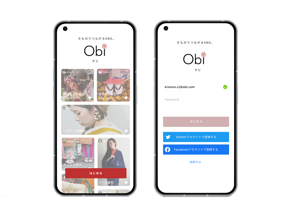 ⇒「自分の持っている着物を共有して、着物友達やコミュニティがつくれるSNSがほしいな」という思いから、架空のSNSをイメージし、アプリのサインアップ画面を制作しました。